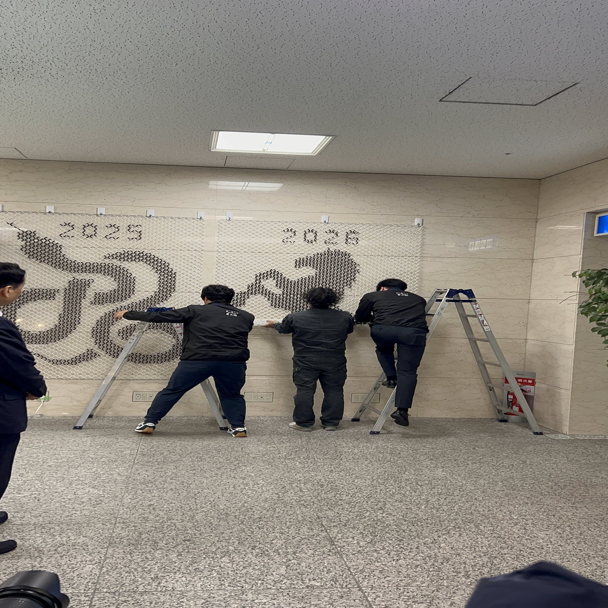 干支が描かれたグラフィックフェンスがかけられている。